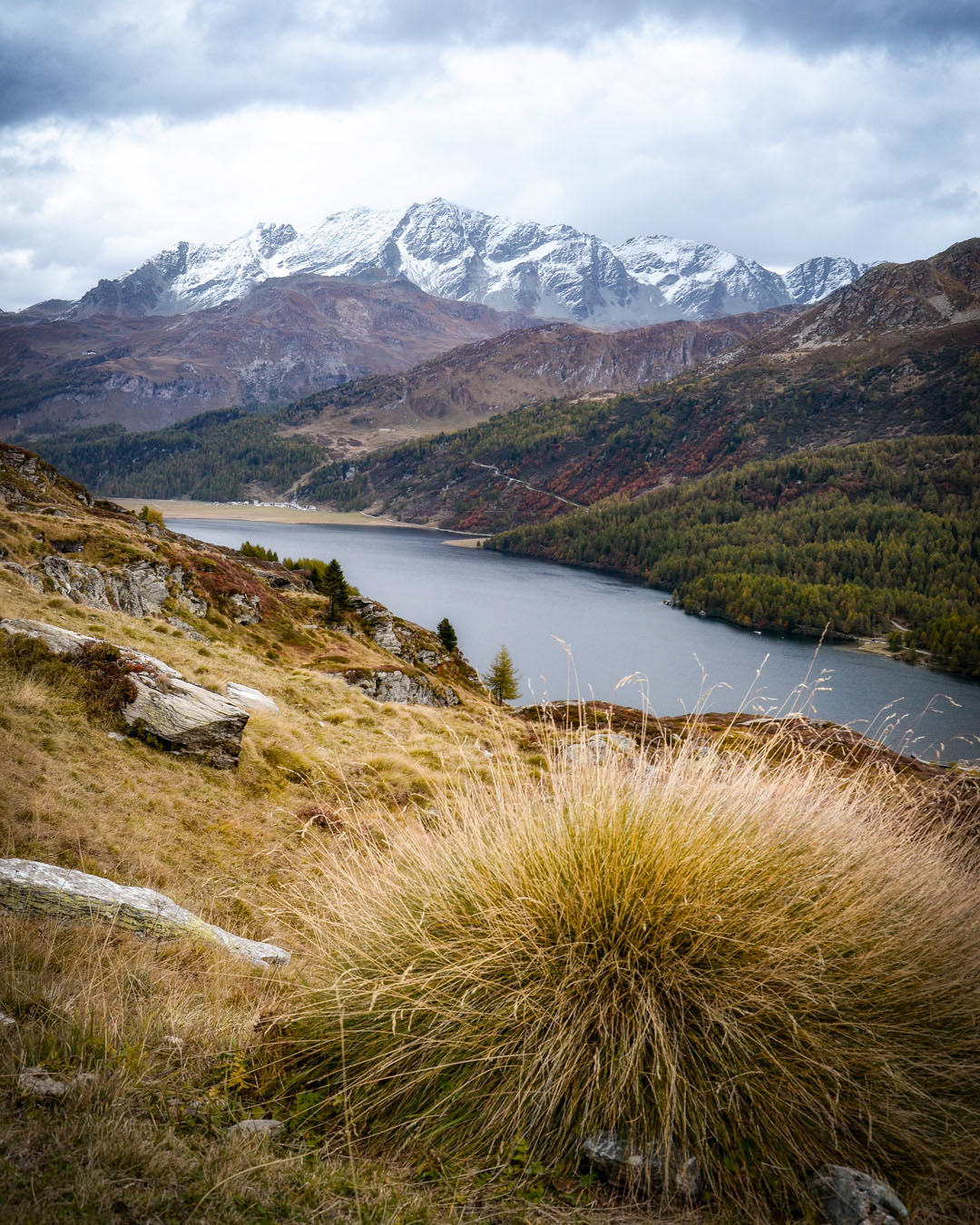 In October 2018 we were in the Engadin. I wanted to catch the autumn colors of the larches and enjoy the last warm rays of sunshine. When we arrived, the first trees were slowly getting golden, but the main season of the golden larches was after our stay. Nevertheless, it seemed as if the trees were getting a bit more golden every day and we had exciting lighting conditions. Partly cloudy days with sun and clouds, but without rain. Perfect for hike every day in another area and experiencing the diversity of the Engadin. It was certainly not the last stay in this area, there is still much to discover.